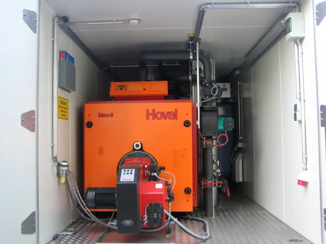 Heizungsanlagen komplett installiert im Container oder Anhängern für Öl, Gas und Pellets (Ausführungen mit oder ohne Brauchwasserheizung)